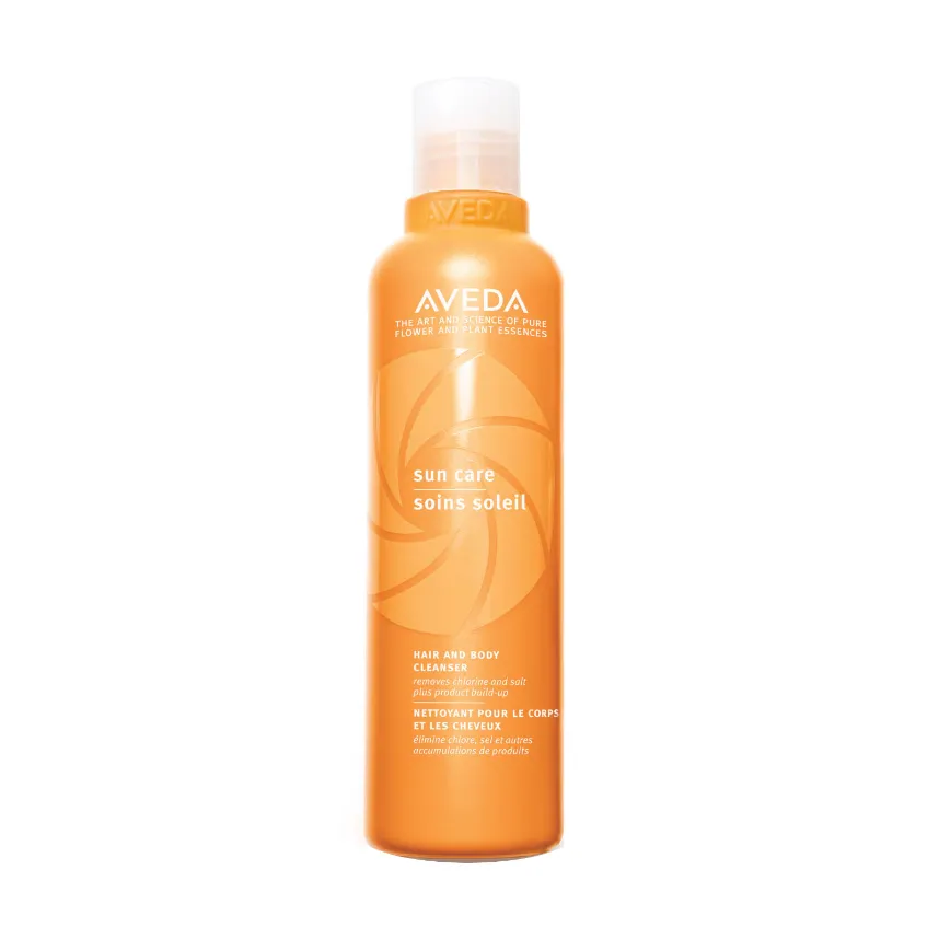 Apply Aveda Sun Care Hair & Body Cleanser on wet hair and body and work into a creamy lather. Rinse. Use daily or whenever hair is exposed to sun, salt and chlorine.