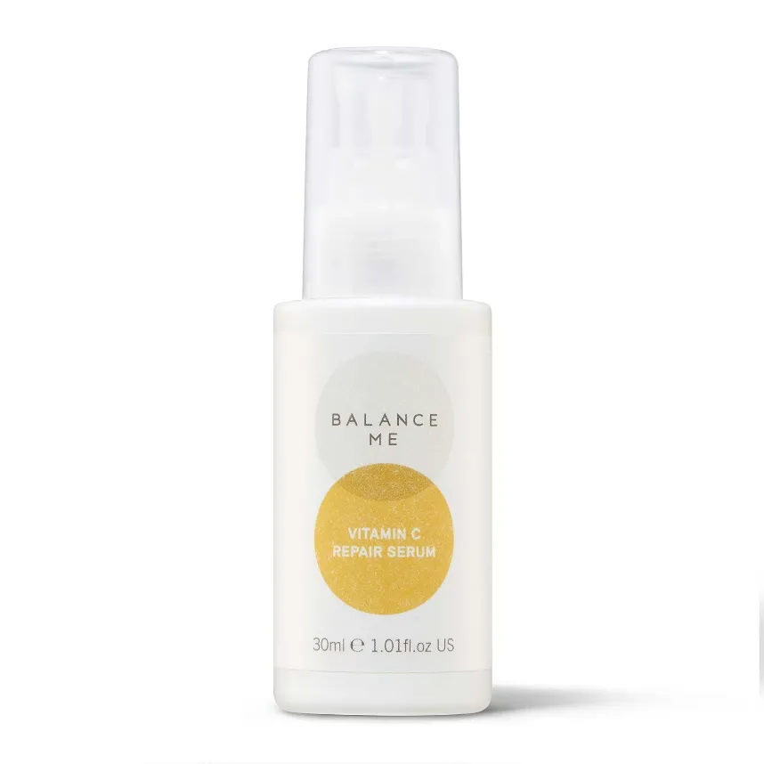 After cleansing and before your moisturiser apply tiny dots of Balance Me Vitamin C Repair Serum all over your face and neck then blend lightly and quickly all over. The gel texture means it will absorb rapidly.