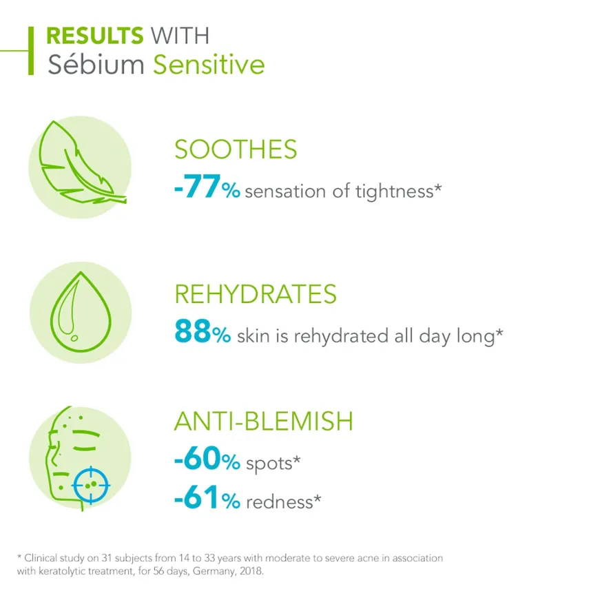 Apply after cleansing with Sébium Gel moussant (Foaming gel) or Sébium H2O.