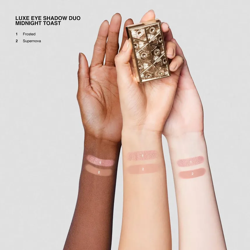 Buildable Luxe Rich Matte shades swipe on stunning holiday looks while Luxe Rich Lustre shades are created with chromatic pigments for high-impact sparkle.