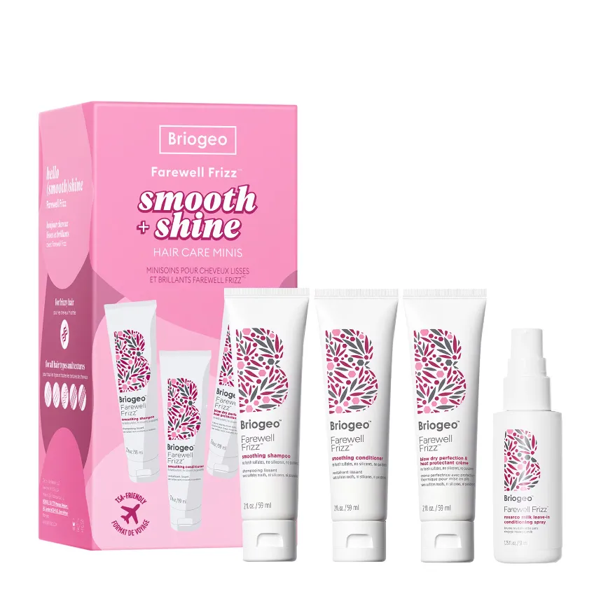 The Briogeo Farewell Frizz™ Smooth + Shine Hair Care Travel Kit includes: