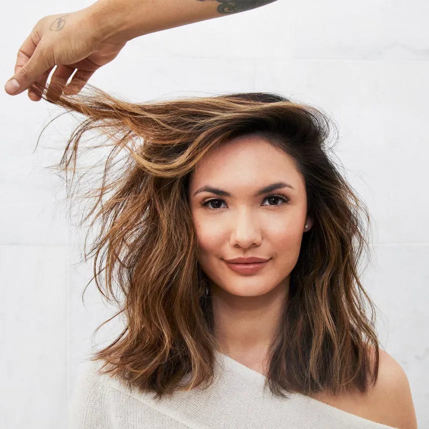For everyday, all-around fullness, spray each section from roots to ends, working it in so it evenly surrounds each strand. Blow-dry using your hands, lifting and overdirecting the hair to create fullness. Once dry, use a large-barrel curling iron to define texture and shape.