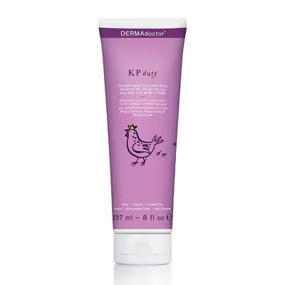 DERMAdoctor’s KP Duty Dermatologist Formulated Body Scrub for Dry, Rough, Bumpy Skin with 10% AHAs + PHAs combines the benefits of a chemical peel and microdermabrasion into a single, easy to use formulation. This clean, clinical and cruelty-free formulation is supercharged with clinically beneficial AHAs, PHAs, BHA and soothing and calming botanicals––evening primrose, black currant seed and borage oils. Together, these ingredients help reveal incredibly soft and healthy skin.