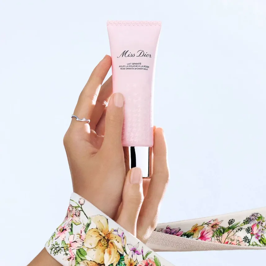 Miss Dior Rose Granita Shower Milk is the 2nd step in the bath ritual for more beautiful skin perfumed with the scent of Miss Dior.