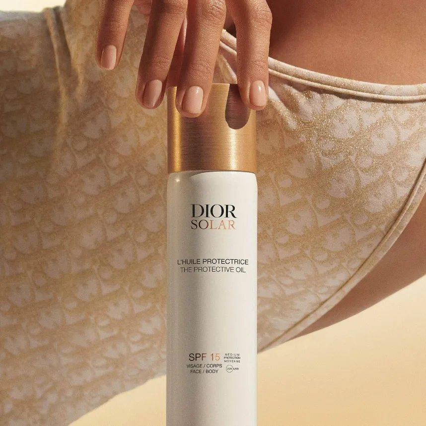 Dior Solar The Protective Face and Body Oil SPF 15 can be used on both the body and the face: spray the sunscreen oil in the palm of your hand and apply it to the skin.
