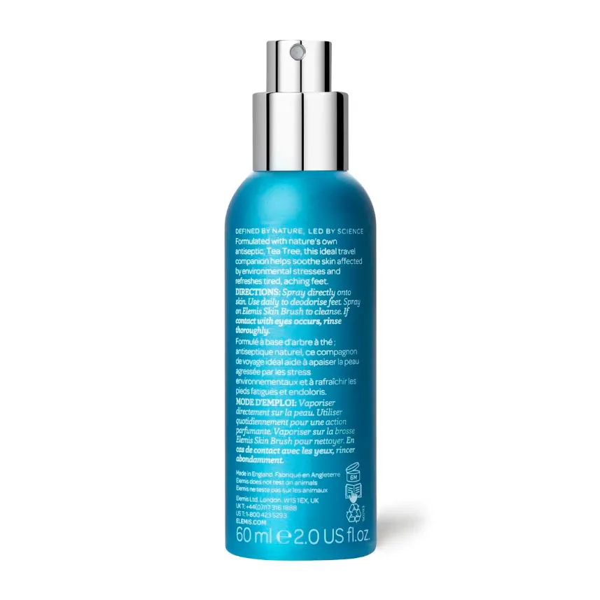 Spray ELEMIS Sp@Home Tea Tree S.O.S. Spray directly onto the skin. For healthy feet, use daily to purify and deodorise. Spray onto the ELEMIS Skin Brush as a disinfectant.