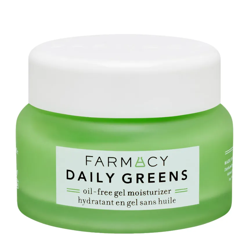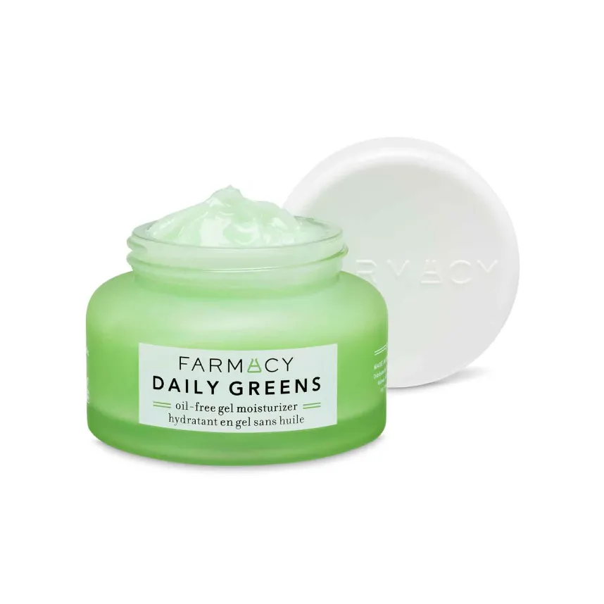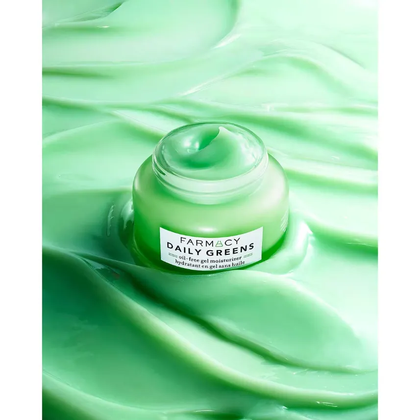 Farmacy Beauty DAILY GREENS Oil-Free Gel Moisturizer now with an upgraded, fragrance-free formula that delivers lightweight, lasting hydration while helping to clear pores, reduce shine + balance oil.