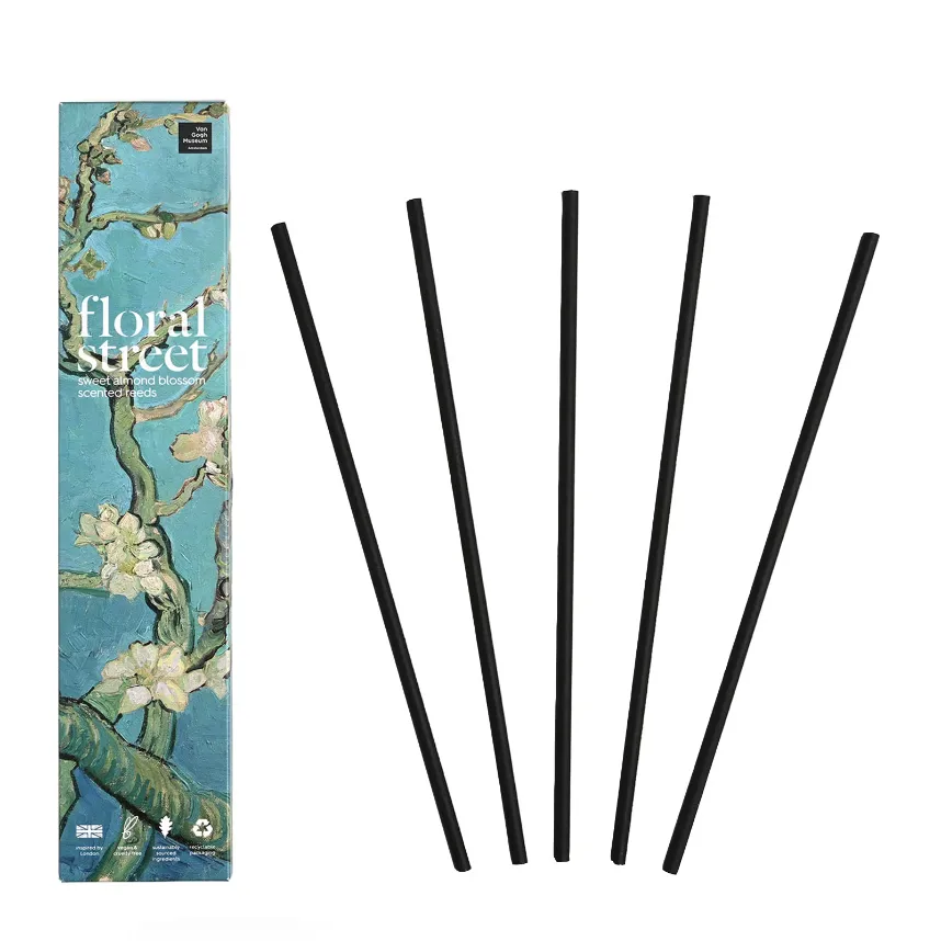 Floral Street Sweet Almond Blossom Scented Reeds includes 5 scented reeds. Fragrance diffusion lasts up to 8 weeks.