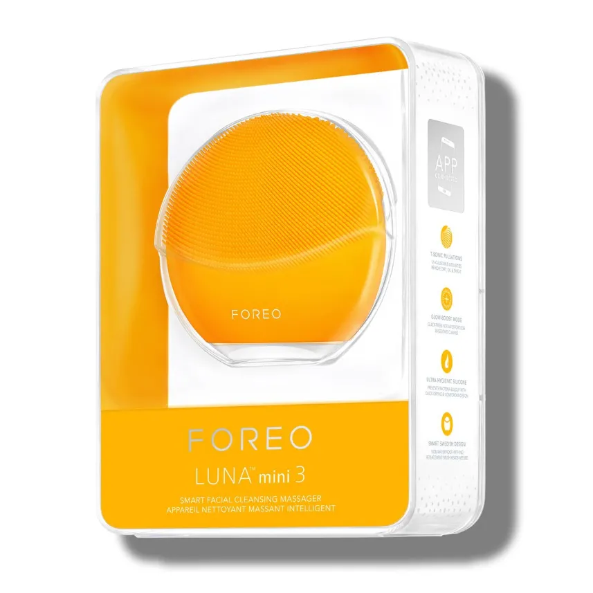 FOREO LUNA Mini 3 Dual-Sided Face Brush For All Skin Types – Sunflower Yellow – USB Plug