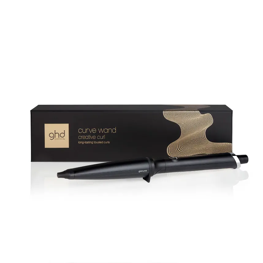 The ghd curve® Creative Curl Wand is suitable for all hair lengths and can style a range of looks; from tight, textured curls to soft tousled waves that stay in place all day long. The ultra-zone technology allows consistent curls in just five to eight seconds. Thanks to its 28mm – 23mm tapered barrel, you can create a number of styles using just one tool – from big and bouncy curls to tousled beachy waves. The protective cool tip provides you with a safe place to hold the hair in place while you curl and the built-in safety stand allows you to place the wand down securely during styling. Other handy features include a professional-length cord to allow for flexible styling, automatic sleep mode after 30 minutes without use and universal voltage, so you can use your wand anywhere in the world.