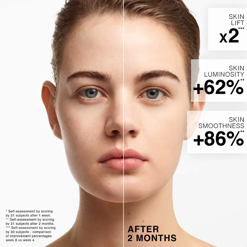 Endowed with millennial Vital Algae’s extraordinary life force, this weightless creamy texture immediately melts into the skin to deeply infuse its rejuvenating properties, leaving an evanescent feeling of comfort with a velvety finish. Day after day, wrinkles and fine lines fade, while density and firmness are restored. The skin’s texture is refined and more even, visibly younger and more beautiful.