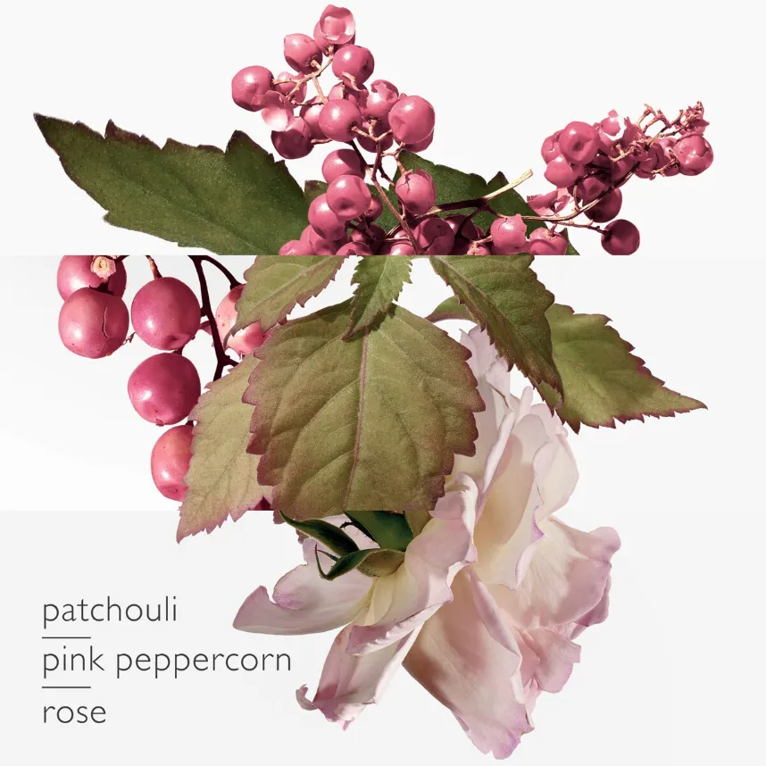 Twilly Eau Poivrée travels from the skin to the mind, colourful and incisive. Three new materials make up its sensuality: the vibrant and abundant heat of pink peppercorn, the teenage freshness of tender rose and the captivating enchantment of patchouli. Their essences intertwine, weaving the invisible web that connects the Hermès girls to each other.