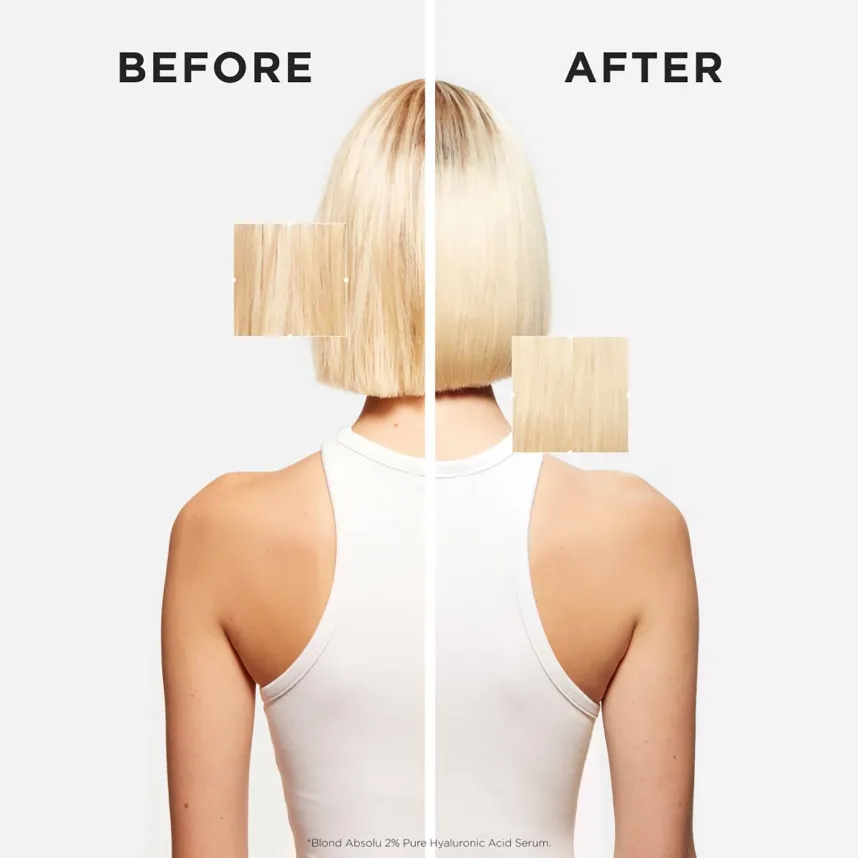 It’s their ultimate blonde repair serum for bleached blondes, as it contains Hyaluronic Acid – with their highest concentration of Macro and Micro Hyaluronic Acid – the formula helps repair the look of surface damage of the hair and moisturises the scalp whilst leaving the hair feeling hydrated.