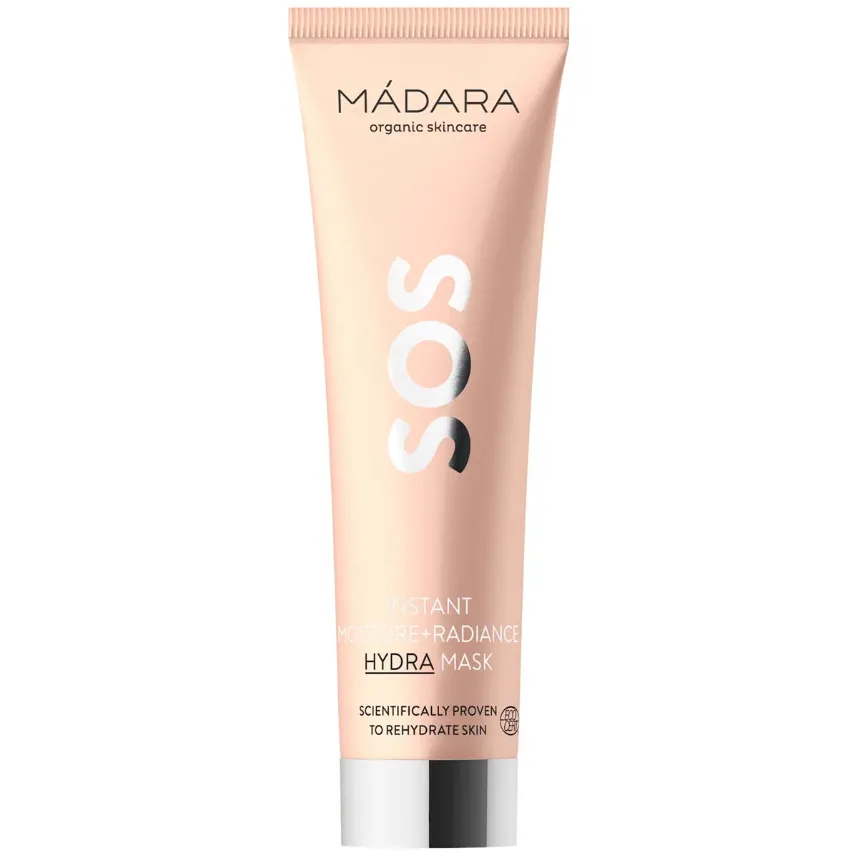 Madara SOS Instant Moisture & Radiance Hydra Mask – Intense treatment for dry, tight, stressed and dehydrated skin. Key benefits: – Provides an immediate comfort, reduces skin tightness and prevents itching. – Contains a blend of moisturizing natural sugars, Northern peony, hyaluronic acid, linseed and nettle. – Improves the look and feel of the skin, provides instant and persistent results. – Prevents a repetitive dehydration. – Suitable for all skin types to pamper the skin and remove signs of fatigue instantly. – Soft and powdery scent. Based on Northern peony extract, the new Madara SOS Instant Moisture & Radiance Hydra Mask provides strong skin moisturising, conditioning, toning, smoothing and antioxidant effects, and protects the skin from environmental damage and premature ageing. Enriched with anti-inflammatory linseed and nettle, and hyaluronic acid, known for its unparalleled skin moisturising properties. Vegan, Paraben Free, Gluten Free, Vegetarian, Organic.