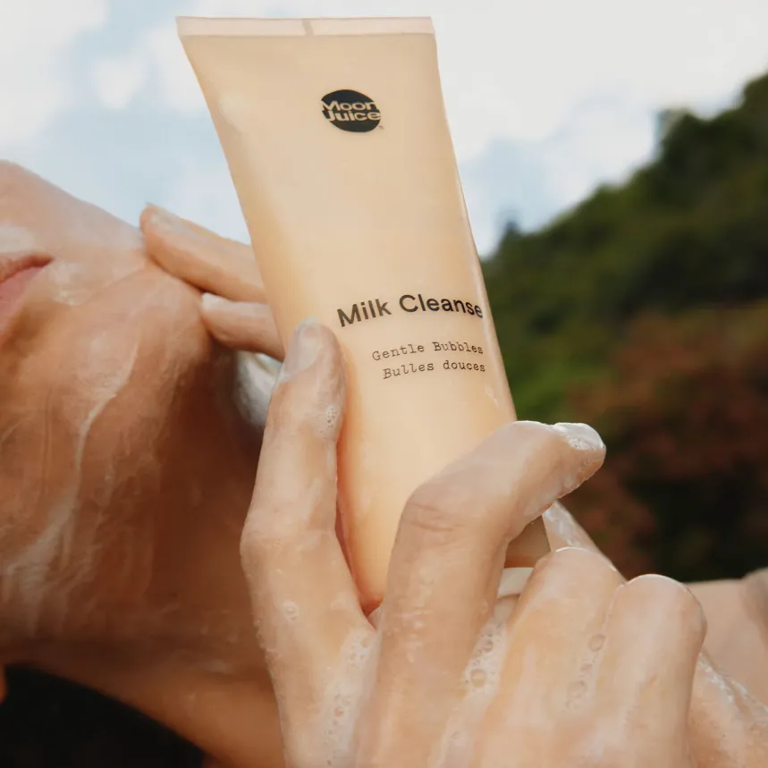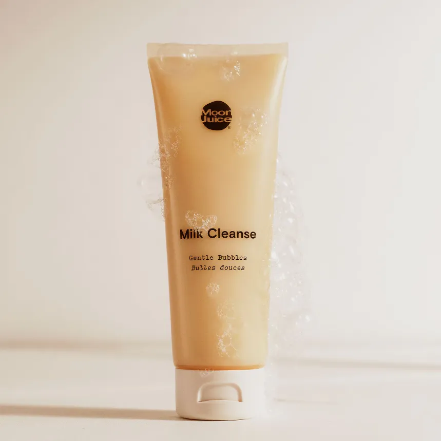 The Moon Juice Milk Cleanse Gentle Bubbles formula is a cleanser and a treatment. Gentle, sulphate-free, pH balanced bubbles come from Coconut Ferment. After gentle cleansing, adaptogenic Reishi, Silver Ear Mushroom, and Tocos (Vitamin E) help support hydration and healthy barrier function.