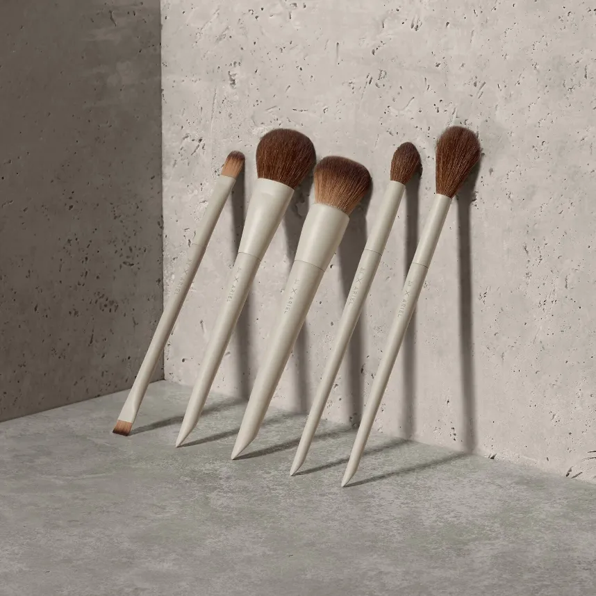 To begin blush application, place the brush on its side. As you sweep up the cheekbones toward the temples, pull the brush. The elongated, fluffy bristles will perfectly disperse and diffuse the product to create a naturally flushed finish.
