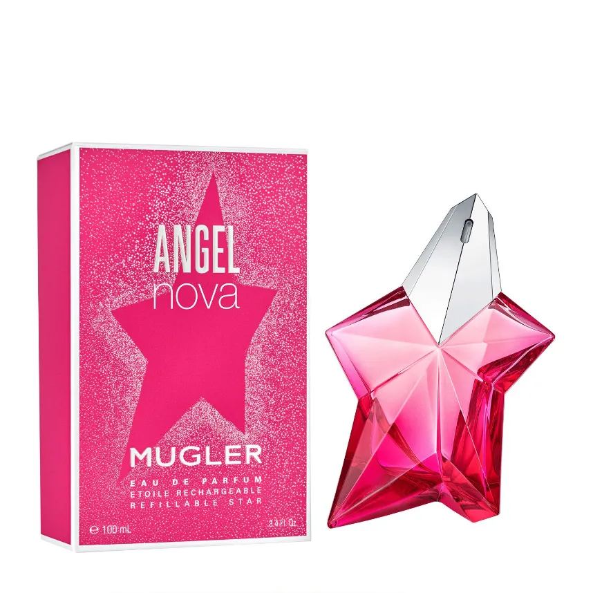 With Angel Nova, the original star-shaped bottle is seen through a new light. The bottle is adorned with a vibrant and luminous raspberry pink gradient to celebrate Angel Nova’s daring desire to reinvent itself.