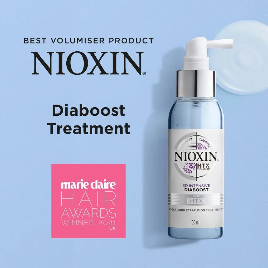 The hair becomes manageable, fuller and noticeably thicker after just one use. Diameter-boosting Diaboost with HTX technology includes ingredients which provide notable benefits for skin care such as caffeine, panthenol and niacinamide that deliver visibly thicker-looking hair instantly. Nioxin’s leave-on treatment boosts the existing hair diameter instantly, increasing the thickness of each hair strand for fuller-looking hair.