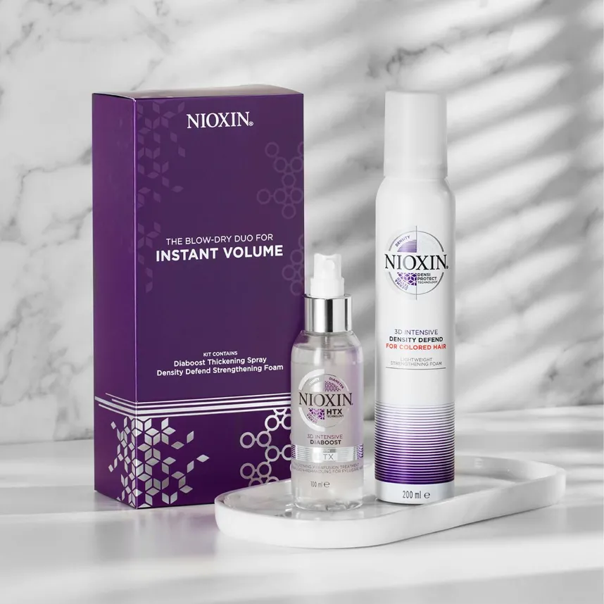 Density Defend Foam: Apply to damp or towel-dried hair and comb through Blow-dry as usual.