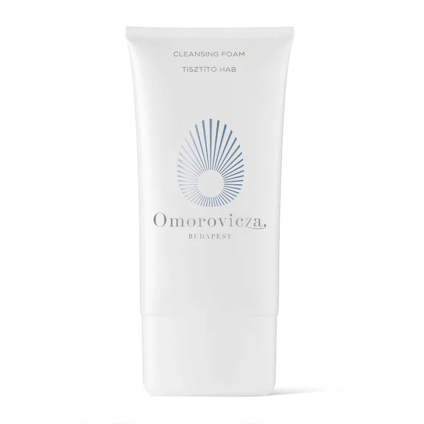 Lightly moisten face and squeeze a pearl size amount of Omorovicza Cleansing Foam into the palm of the hand.