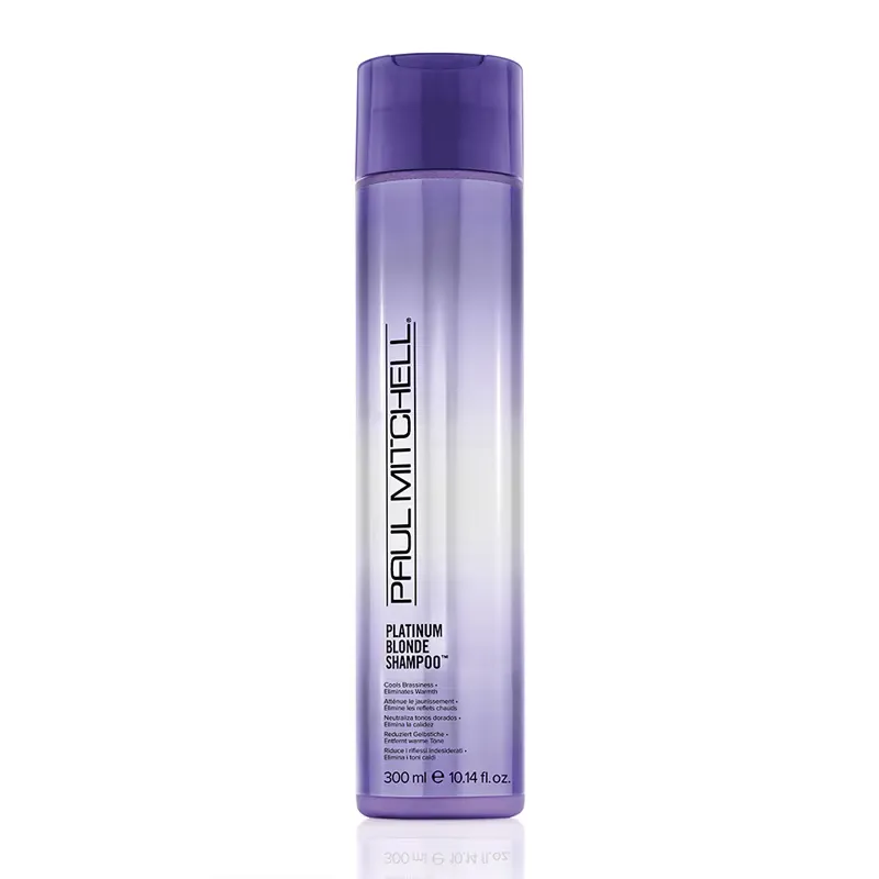 Wet hair. Lather Paul Mitchell Blonde Platinum Blonde Shampoo™ and allow to remain on hair for 1-5 minutes. Rinse.