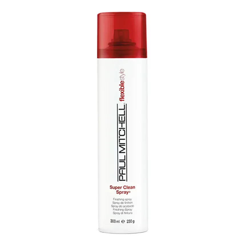 Spray Paul Mitchell Flexible Style Super Clean Spray® Finishing Spray on dry hair. To create maximum body, lift hair and spray close to the scalp. If nozzle blocks, remove and rinse in warm water.