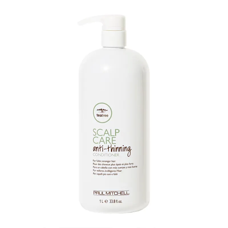 Cleanse with Anti-Thinning Shampoo and rinse. Distribute Paul Mitchell Tea Tree Scalp Care Anti-Thinning Conditioner® evenly through the hair. Rinse thoroughly. For best results, use with Anti-Thinning Tonic.