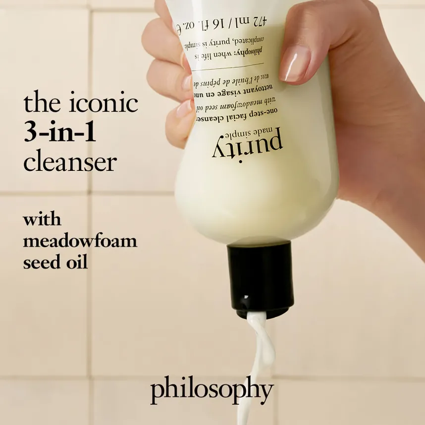 An 3-in-1 face wash for easy, one-step cleansing—Purity Made Simple Facial Cleanser, the number one face wash in America.