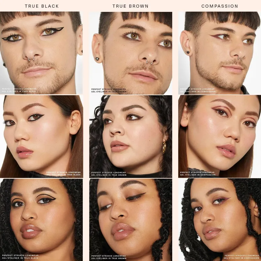 All the pigment, precision, and longwear of Perfect Strokes Matte Liquid Liner, now in an easy gel pencil. Glide on rich color that won’t tug or skip, even on the waterline. Stays creamy and blendable for stress-free playtime, so you can smudge/smoke it out before it sets for transferproof wear.