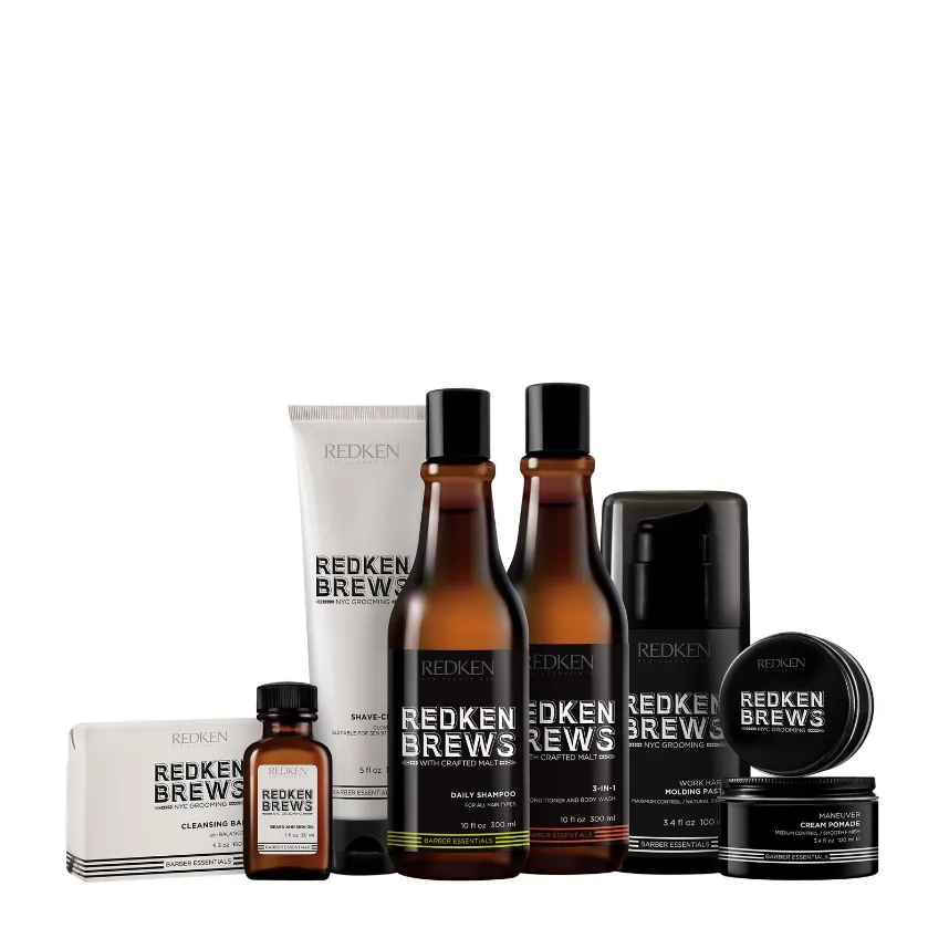 In 1967 Redken introduced one of the first professional grooming lines for men. Staying true to the heritage the next generation of men’s essentials is here. Infused with Malt Extract this barber inspired mens grooming line up offers the best in haircare, styling and skin. We have everything for your male grooming need: shampoo, 3-in-1 to shampoo condition and bodywash, cleanse bar, pomade, gels, wax, fibre paste, hairspray, clay, beard oil, shave cream and a famous pH balanced cleanse bar for the whole body.