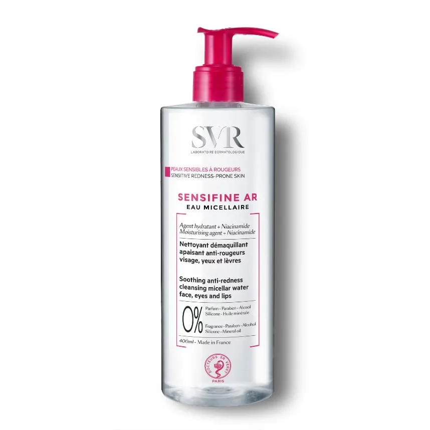 Then glide gently over the skin to remove make-up and impurities. SVR SENSIFINE AR Micellar Water removes make-up from the face, eyes, and lips.