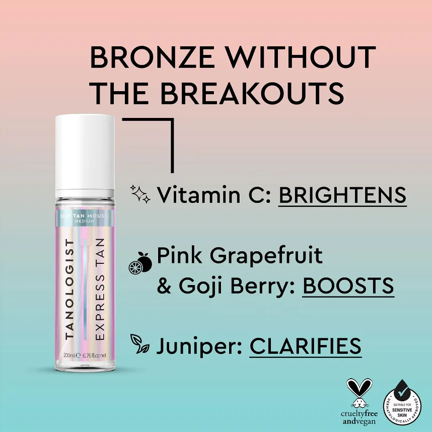 – No tan-transfer onto sheets or clothes Available in 3 adaptable shades, choose yours based on your desired end result. Each bottle is express, so for a light glow, wash off after 2 hours. For the deepest bronze max it out overnight before showering.