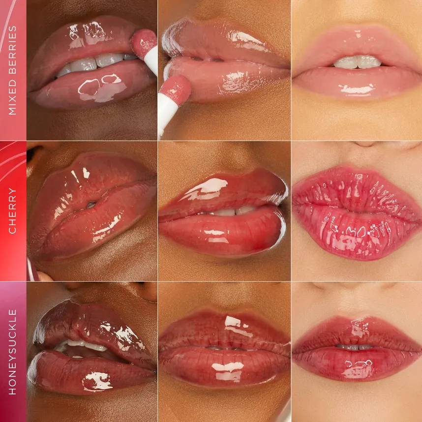 Ingredients: Hydrogenated Polyisobutene, diisostearyl dimer dilinoleate, phytosteryl/octyldodecyl lauroyl glutamate, ethylene/propylene/styrene copolymer, menthone glycerin acetal, prunus armeniaca (apricot) kernel oil, helianthus annuus (sunflower) seed oil, carica papaya (papaya) seed oil, citrullus lanatus (watermelon) seed oil, cocos nucifera (coconut) oil, linum usitatissimum (linseed) seed oil, prunus domestica (french plum) seed oil, ribes nigrum (black currant) seed oil, rosa canina (rosehip) fruit oil, rubus fruticosus (blackberry) seed oil, vitis vinifera (grape) seed oil, passiflora edulis seed oil, salvia hispanica (chia) seed oil, ricinus communis (castor) seed oil, sodium hyaluronate, hydrogenated castor oil, citrullus lanatus (watermelon) fruit extract, citrus limon (lemon) fruit extract, fragaria vesca (strawberry) fruit extract, prunus persica (peach) fruit extract, tocopheryl acetate, vaccinium angustifolium (blueberry) fruit extract, vaccinium macrocarpon (cranberry) fruit extract, glyceryl caprylate, ethyl vanillin, butylene/ethylene/styrene copolymer, glyceryl behenate/eicosadioate, pentaerythrityl tetra-di-t-butyl hydroxyhydrocinnamate, tocopherol. (+/-): Titanium Dioxide (CI 77891), red 6 (CI 15850), iron oxides (CI 77491, CI 77492, CI 77499), yellow 5 lake (CI 19140), red 7 (CI 15850), blue 1 lake (CI 42090), red 28 lake (CI 45410), red 33 lake (CI 17200).