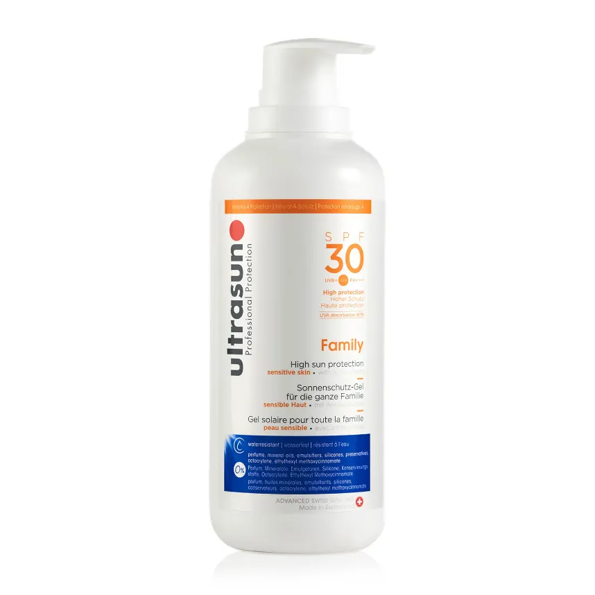 Ultrasun Super Sensitive High SPF 30 Family Formula is free from oils, emulsifiers and perfume reducing the risk of allergy and making it especially suitable for sensitive skins. Like other Ultrasun products, it is non-staining, non-greasy, water-resistant and easy to use.