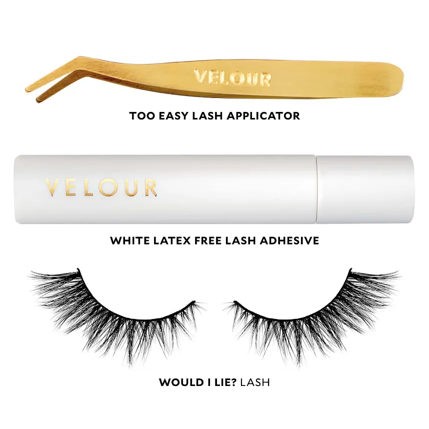 Would I Lie? are natural-looking lashes that are perfect for first-time lash users. The Mini Too Easy Lash Applicator is designed to make applying and perfecting your false lashes a breeze. Deluxe White Latex Free Lash Adhesive dries completely invisible and lasts all day. Let’s get started!